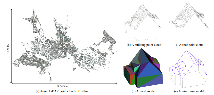 Building3D 是一个城市尺度数据集,用于利用航空激光雷达点云进行建筑物屋顶建模。它包括超过16万栋建筑物,覆盖了Estonia 的16个城市,总计约998平方公里。除了网格模型和真实世界LiDAR点云外,这是首次发布线框模型。Building3D 将促进未来在城市建模、航空路径规划、网格简化和语义/部件分割等方面的研究。