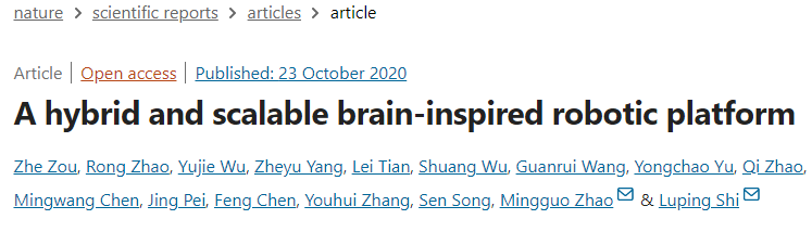 硬件系统:机器人平台建立在一辆改装的电动自行车上,配备了一系列传感器和执行器,形成了一个与人类感觉运动系统相似的感觉运动系统(图2a)。该平台通过摄像头、无线麦克风、一组机载传感器,包括基于激光的速度计、绝对编码器、姿态和航向参考系统,共同确定平台的内部运动状态。所有传感器和执行器都连接到一个可扩展的神经形态计算系统,该系统由现场可编程门阵列(FPGA)和Tianjic芯片组成(图2b)。使用Tianjic实现了具有多种神经网络和丰富编码方案的混合架构。