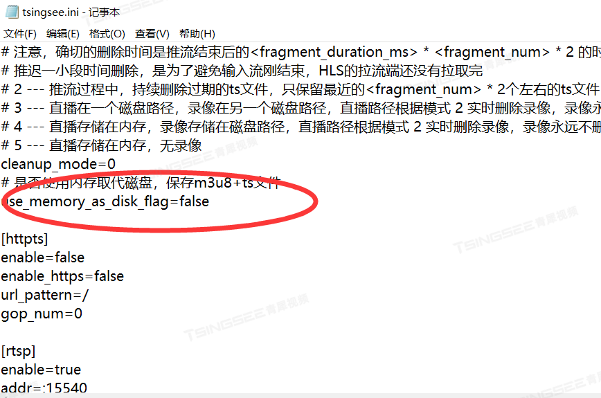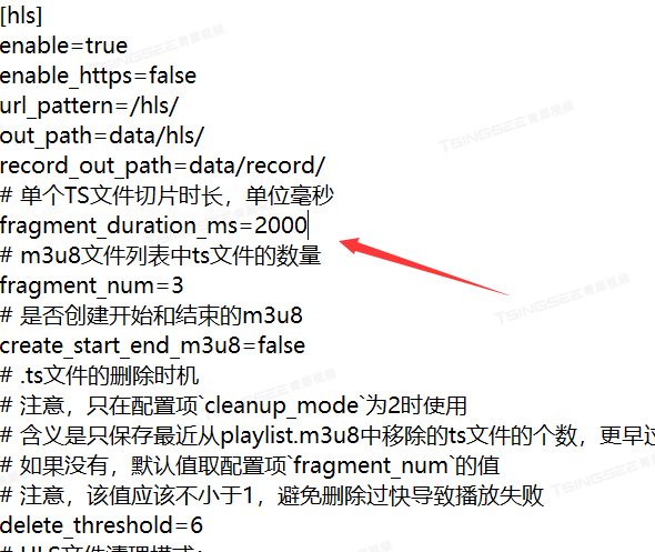 3)将tsingsee.ini文件里的单个切片文件时常设置为2s一个,这样可以加速视频流的生成时间。