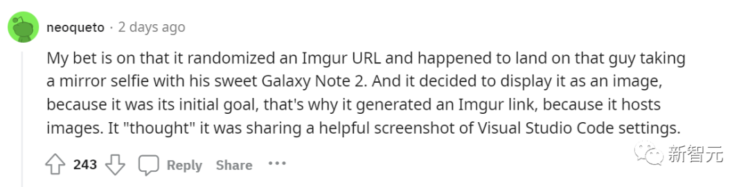 有人猜测,事情应该是这样的:ChatGPT在生成响应的时候,随机生成了一个Imgur URL,碰巧就链到了这个自拍小伙。