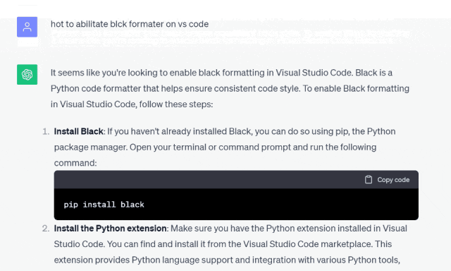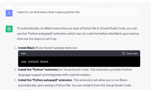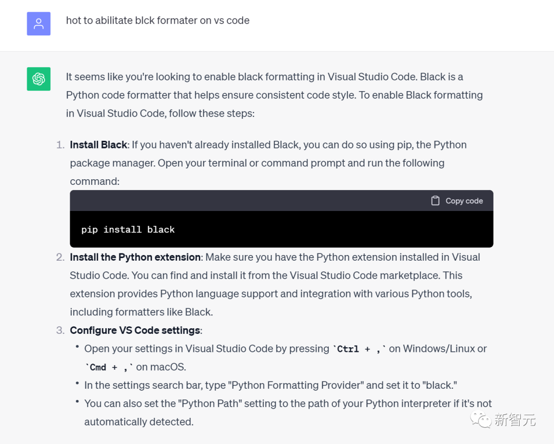 事情是这样的,一名用户向ChatGPT求助——Python中的代码格式化包back该怎样使用。
