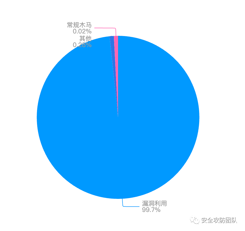 本周细化了云上漏洞攻击行为的类别,其中云上Top5 漏洞攻击行为如下,云上攻击行为主要以挖矿木马为主: