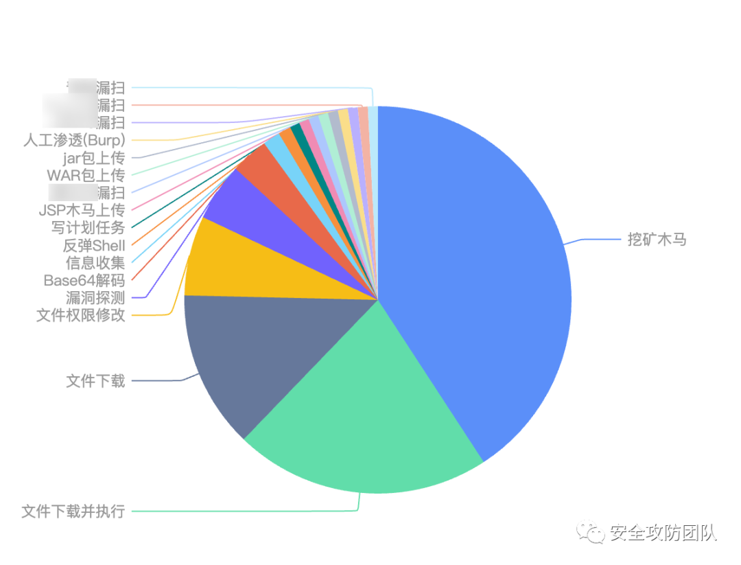 攻击者在使用漏洞攻击的过程中,通常伴随带有目的性的攻击行为。通过WeDetect可挖掘出发起攻击的一些热门攻击行为,洞察攻击背后的真实意图。