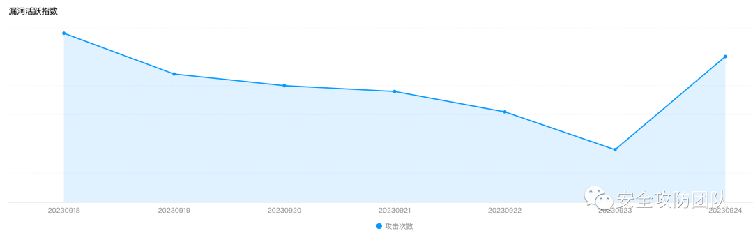 通过漏洞活跃指数,可观察热点漏洞近两周活跃情况,了解此类漏洞攻击属于短期爆发型还是长期稳定型。