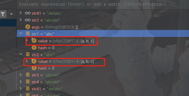 // 因此,上述 String str6 = "defabc" 会在字符串常量池中创建 "defabc" 常量