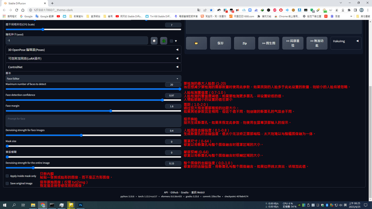 这个脚本的特别之处在于,它将识别到的面部用512*512的分辨率进行重绘,在放回原来的脸部进行融合。局部重绘是无法达到这样的效果的,因为全身图脸崩的原因就是脸部所占画面比例太小,而且AI不知道哪里是脸,哪里要重点画,所以占比小的就画的不精细,容易脸崩。这个放大重绘就解决了AI在小比例上无法绘制精细面部画面的问题
