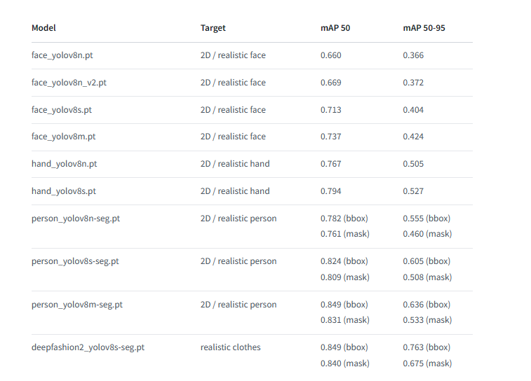 因此,face_yolov8n等模型并非绘图模型,而是目标识别模型,各种模型的识别效果在作者的视频中讲得非常清楚。至于为什么选择不同模型会带来不同的重绘效果,那是因为不同模型识别目标的中心点和范围不一样,导致mask的区域不一样,从而造成了inpaint的结果不一样。