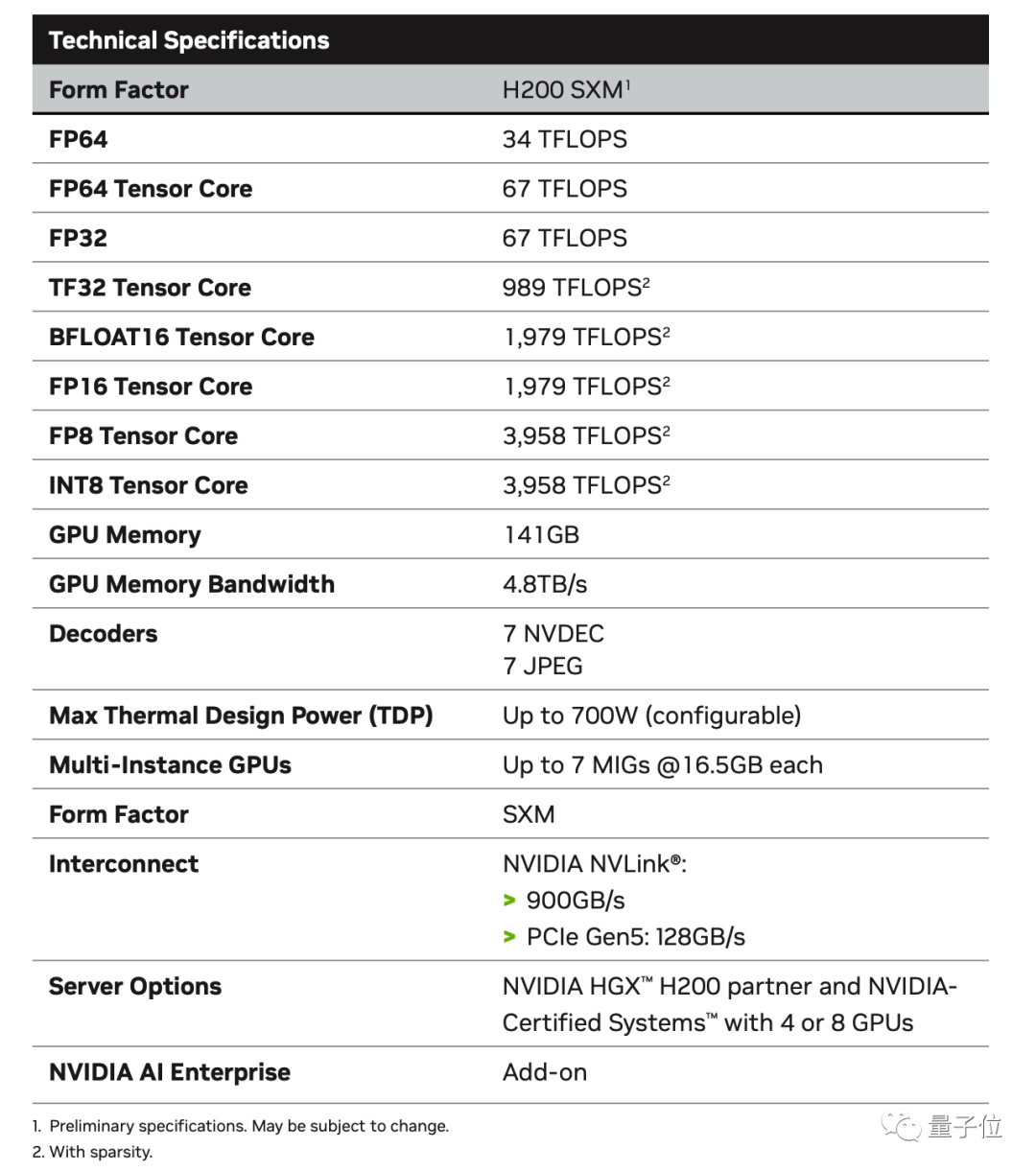 除内存大升级之外,H200与同属Hopper架构的H100相比其他方面基本一致。