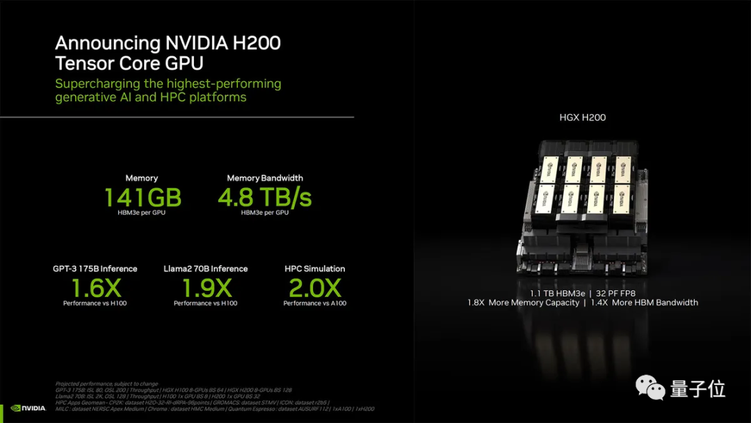 H200与H100完全兼容,意味着将H200添加到已有系统中不需要做任何调整。