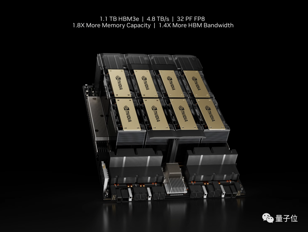 作为首款搭载HBM3e内存的GPU,内存带宽也从3.35TB/s提升至4.8TB/s,提升43%。