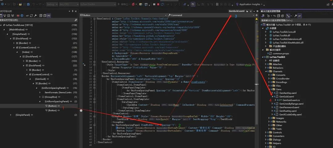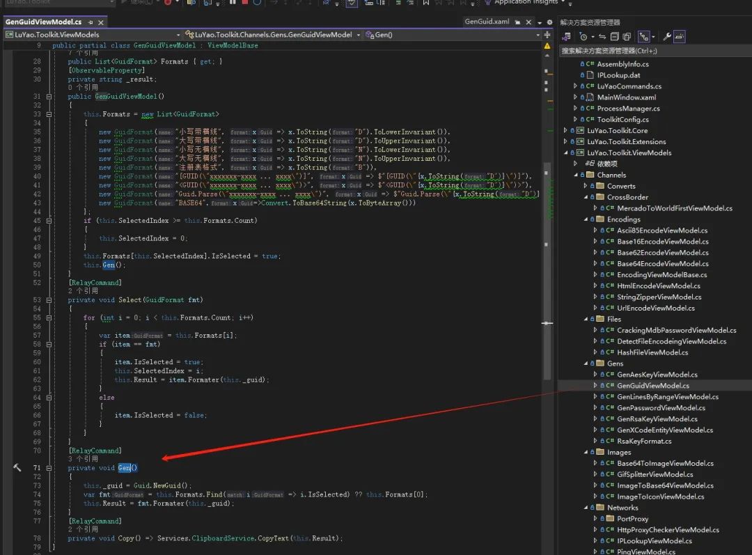 既而可以定位到视图代码文件:**LuYao.Toolkit/Channels/Gens/GenGuid.xml
