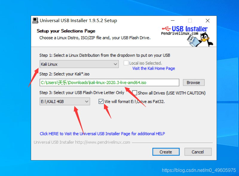 3.利用Universal-USB-Installer (U盘写入系统工具),将kali linux镜像写入到u盘中。