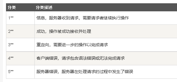 HTTP 状态码由三个十进制数字组成,第一个十进制数字定义了状态码的类型。响应分为五类:信息响应(100–199),成功响应(200–299),重定向(300–399),客户端错误(400–499)和服务器错误 (500–599)