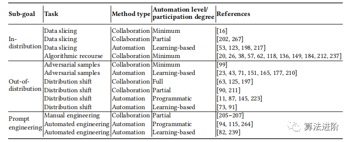 数据切片。数据切片是将数据集划分为相关亚人群,分别评估模型在每个亚人群上的性能。常见的切片方法包括使用预定义的标准,如年龄、性别或种族。实际应用中的数据可能很复杂,需要适当设计分区标准。为了减少人力投入,人们开发了自动切片方法,如SliceFinder、SliceLine、GEORGE和Multiaccuracy,这些方法可以识别出重要的数据切片,提高模型性能。