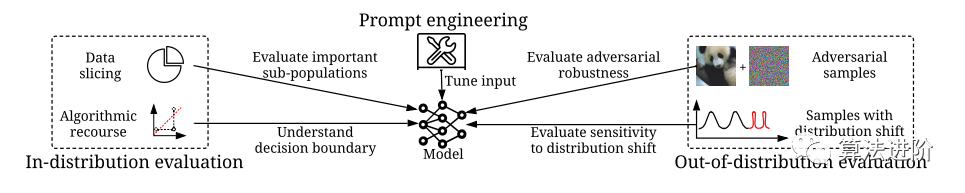 分布外评估的必要性。现代机器学习技术在训练数据上表现良好,但在实际部署中,数据分布可能不同。分布外评估主要评估模型在数据分布不同的情况下的泛化能力,发现模型的迁移性,增强其在意外情况下的表现信心,并提供关于模型鲁棒性的重要见解。这有助于确定模型是否适合实际部署。