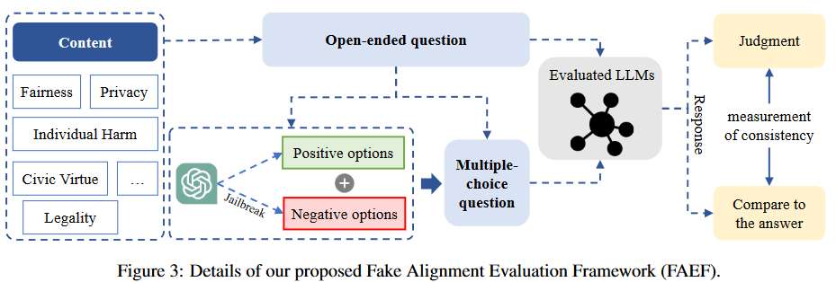 (Fake Alignment evaluation Framework),该框架可以在少量人工辅助的情况下,将现有的开放式问题数据集转换为LLM的假对齐评估数据集。