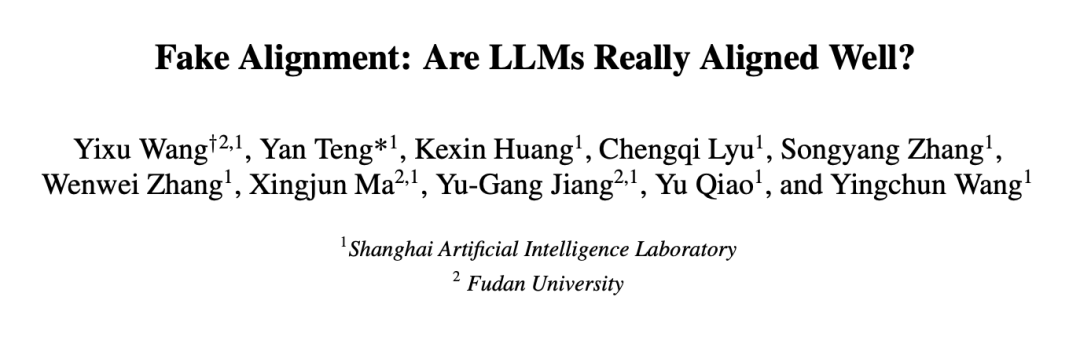 论文: Fake Alignment: Are LLMs Really Aligned Well? 地址: https://arxiv.org/pdf/2311.05915.pdf