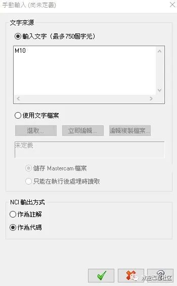 步骤4:您可以选择插入手动输入程式的位置,插入后将会在路径执行结束后,自动插入注解,或者M码、G码,在您的NC程式。