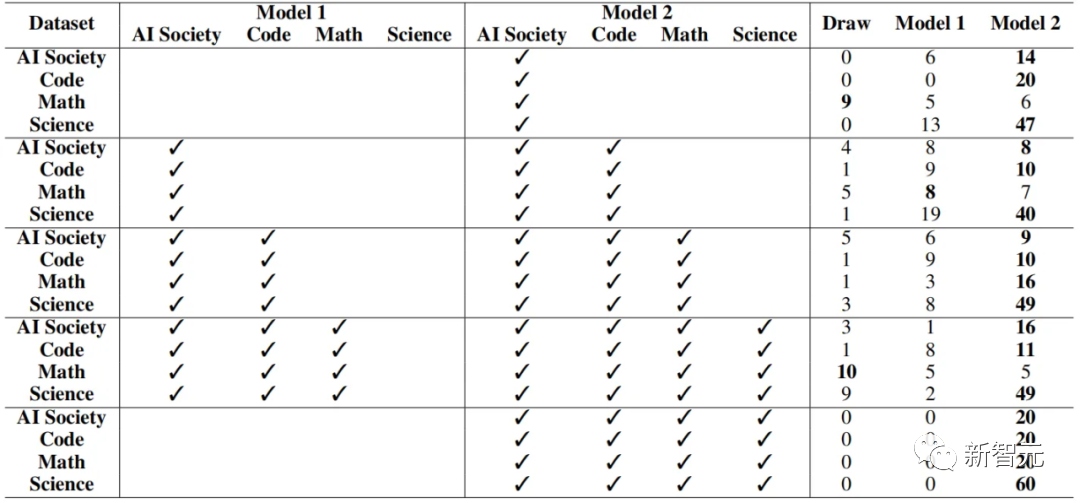 上表展示了模型在20个Society任务、20个代码编写任务、20个数学任务和60个科学任务上的测试效果,可以看到在每次添加数据集时,模型在已训练过的任务域上都会表现得更好。