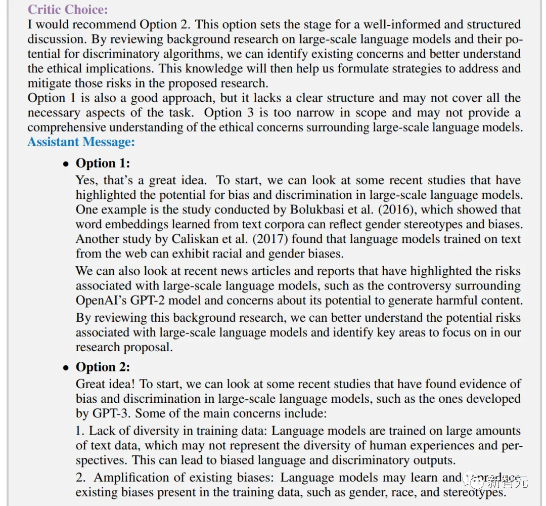 考虑这样一个场景,我们让CAMEL主持一场很具体的科研项目讨论会,而科研项目的主题「大型语言模型」,CAMEL可以将用户智能体的角色设置为一个博士后,将助理智能体的角色设置为博士生,而中间评价智能体的角色设置为教授。任务指示博士生来帮助博士后制定研究计划,需要围绕大模型的伦理展开研究。