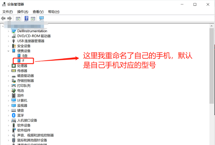 点击此电脑 -> 右击属性 -> 点击设备管理器 -> 找到便携设备 -> 点击找到自己的手机