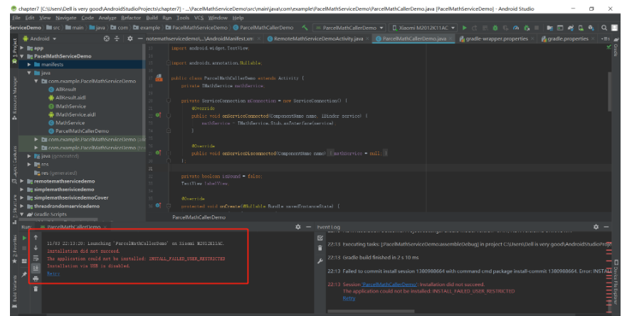 Installation did not succeed. The application could not be installed: INSTALL_FAILED_USER_RESTRICTED Installation via USB is disabled. Retry