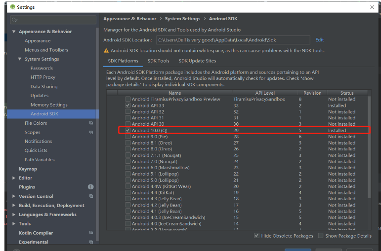 一般编译器的版本比我们真机的安卓版本要低,所以不要犹豫,直接选择最新的来安装。安装完成同样点击apply。(如果你的手机比较旧,那就在自己手机设置那里查看自己手机的安卓版本,找到对应的版本下载即可)