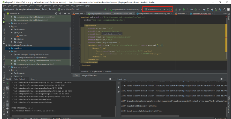在AndroidMainfest.xml中的主活动的标签属性中添加