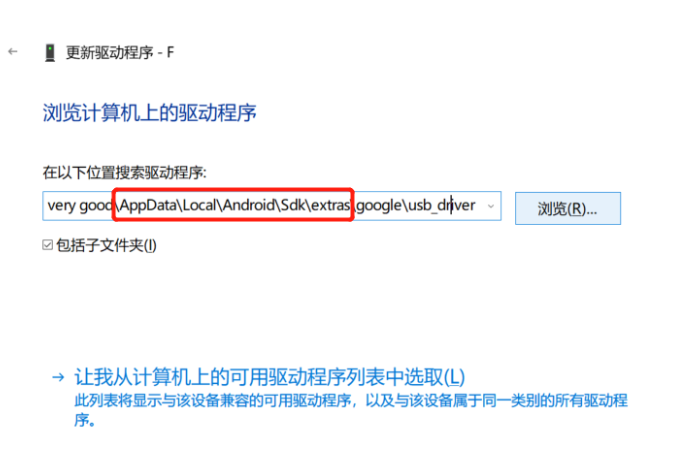 选中设备 右击 -> 点击更新驱动程序 -> 点击浏览计算机上的驱动程序