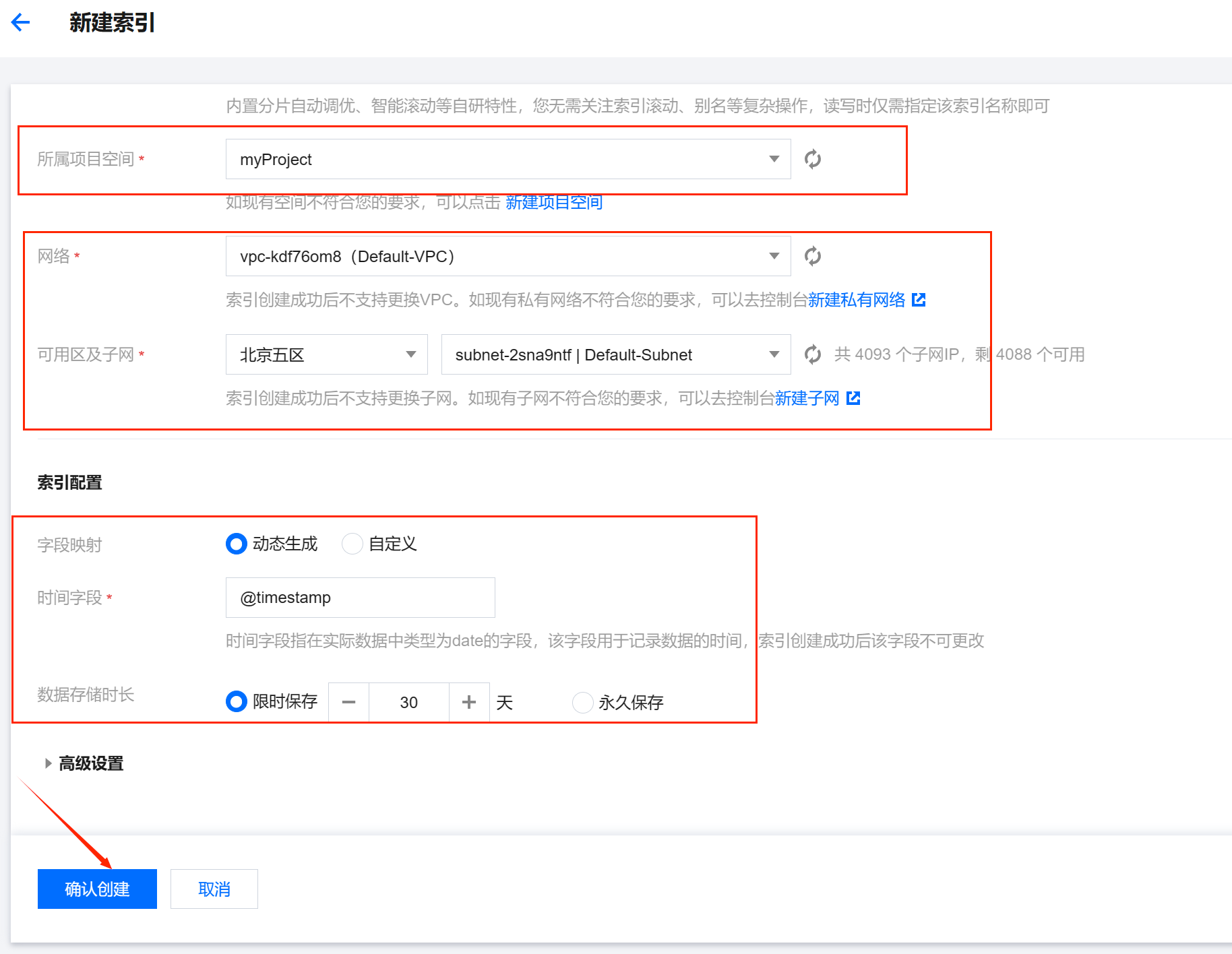 然后点击确认创建,完成索引的创建