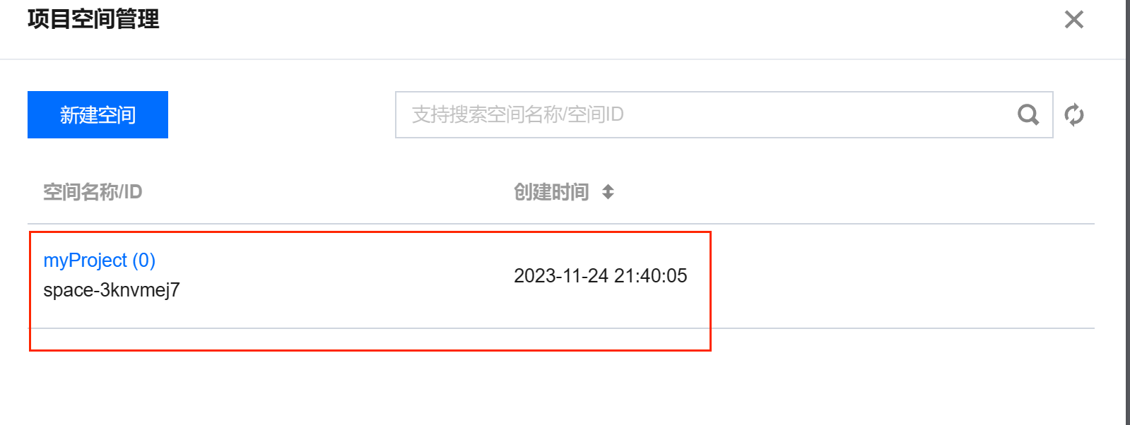 点击项目空间管理