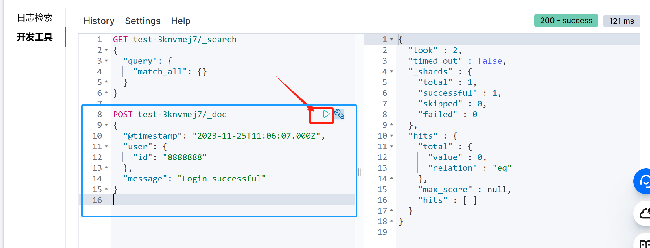 再次执行我们一个查询的DSL 操作命令就可以发现我们刚刚输入的数据了,到这基本使用流程体验完毕