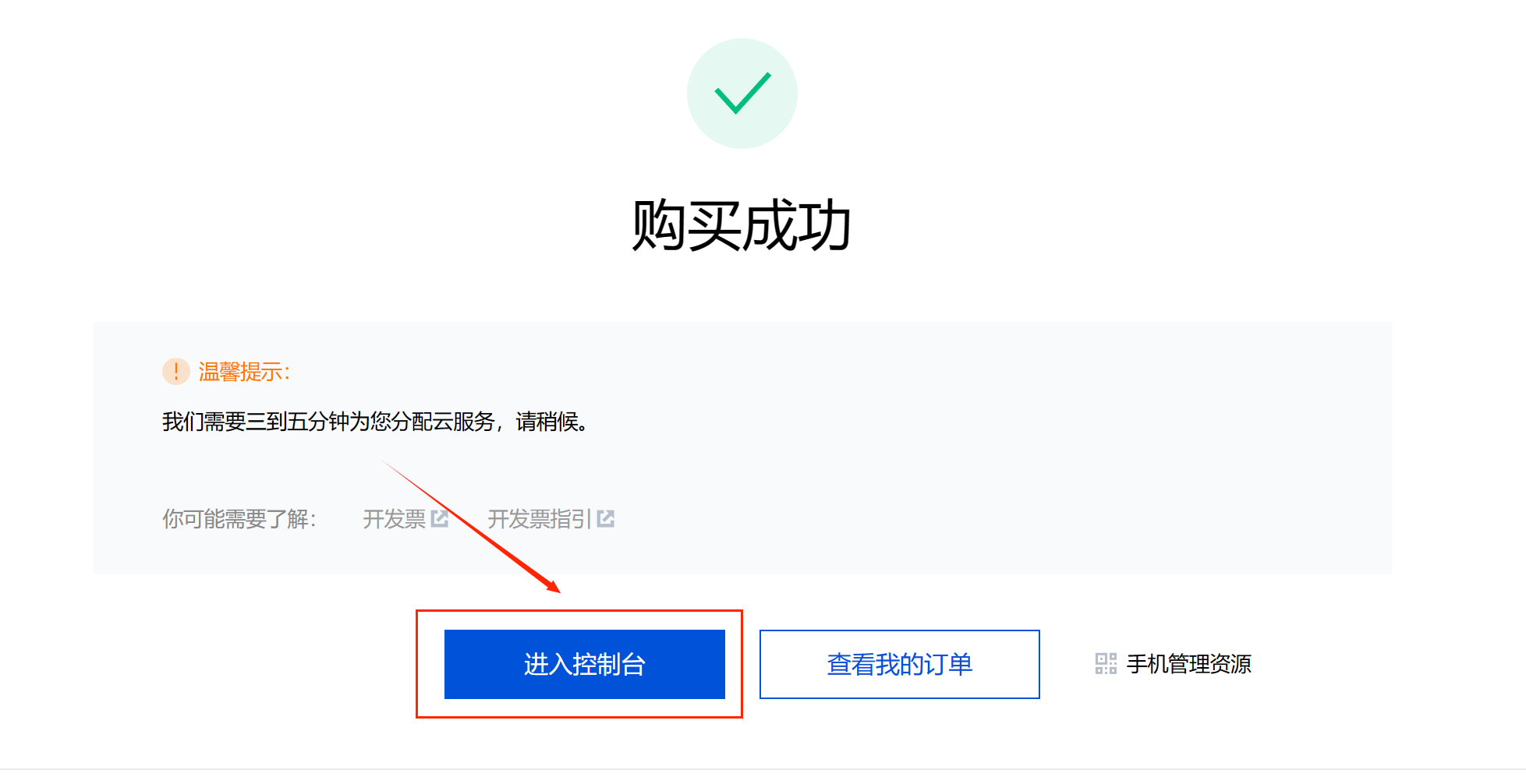 然后就是进行支付,支付成功以后,点击进入控制台即可