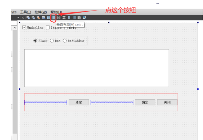 点击水平布局按钮后,窗体变成了这样