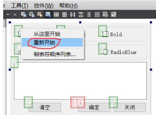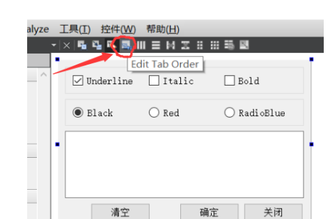点击工具栏上方的Edit Tab Order按钮
