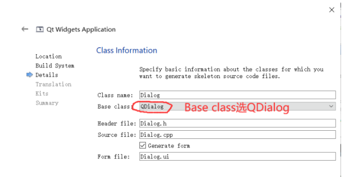 注意选择QDialog作为基类