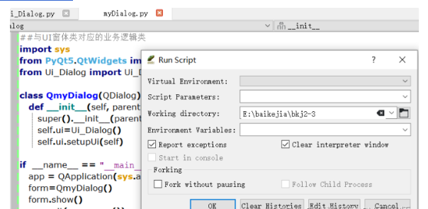 myDialog.py可以当作主程序直接运行,但是建议单独编写一个主程序文件appMain.py。