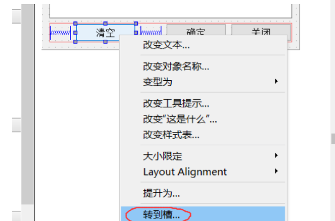 进入Qt Creator,右键点击清空按钮,选择转到槽