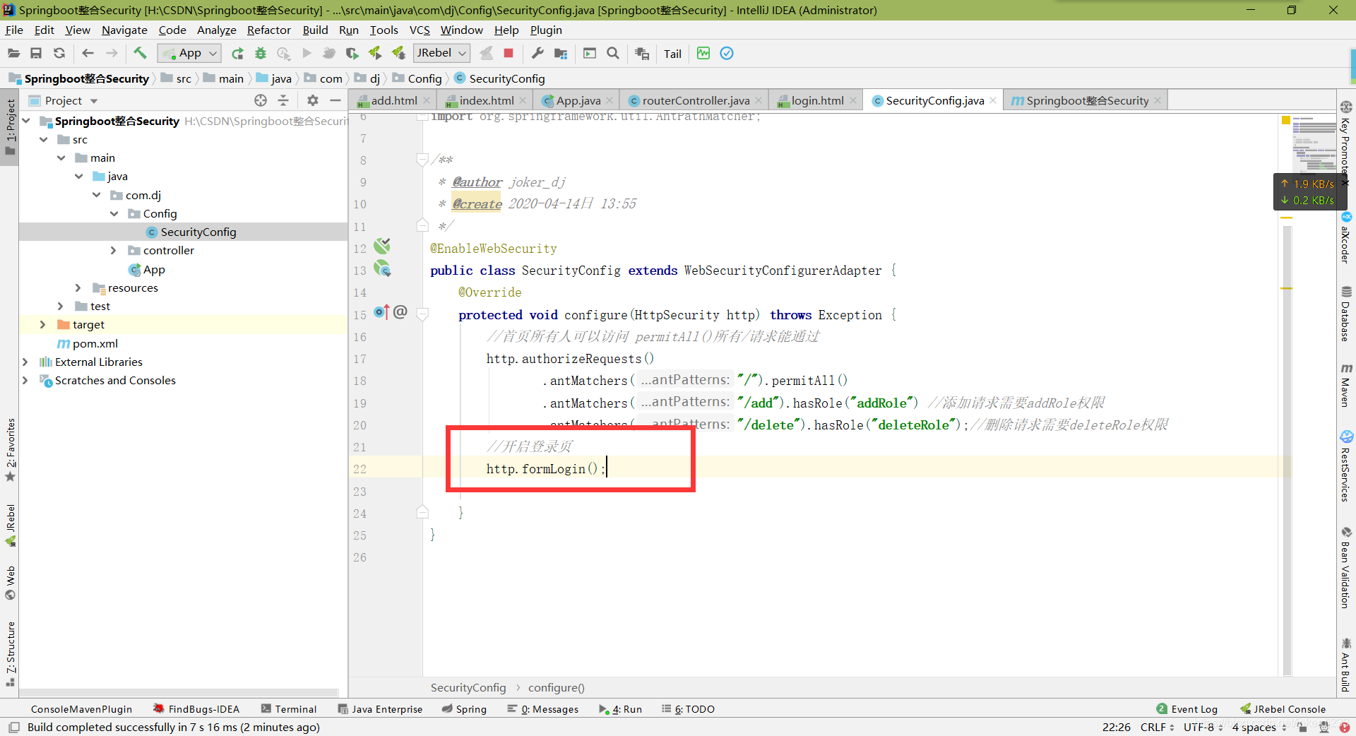.loginPage("/toLogin");输入用户名密码 点击登录按钮 会发现登陆失败 找不到 /login请求
