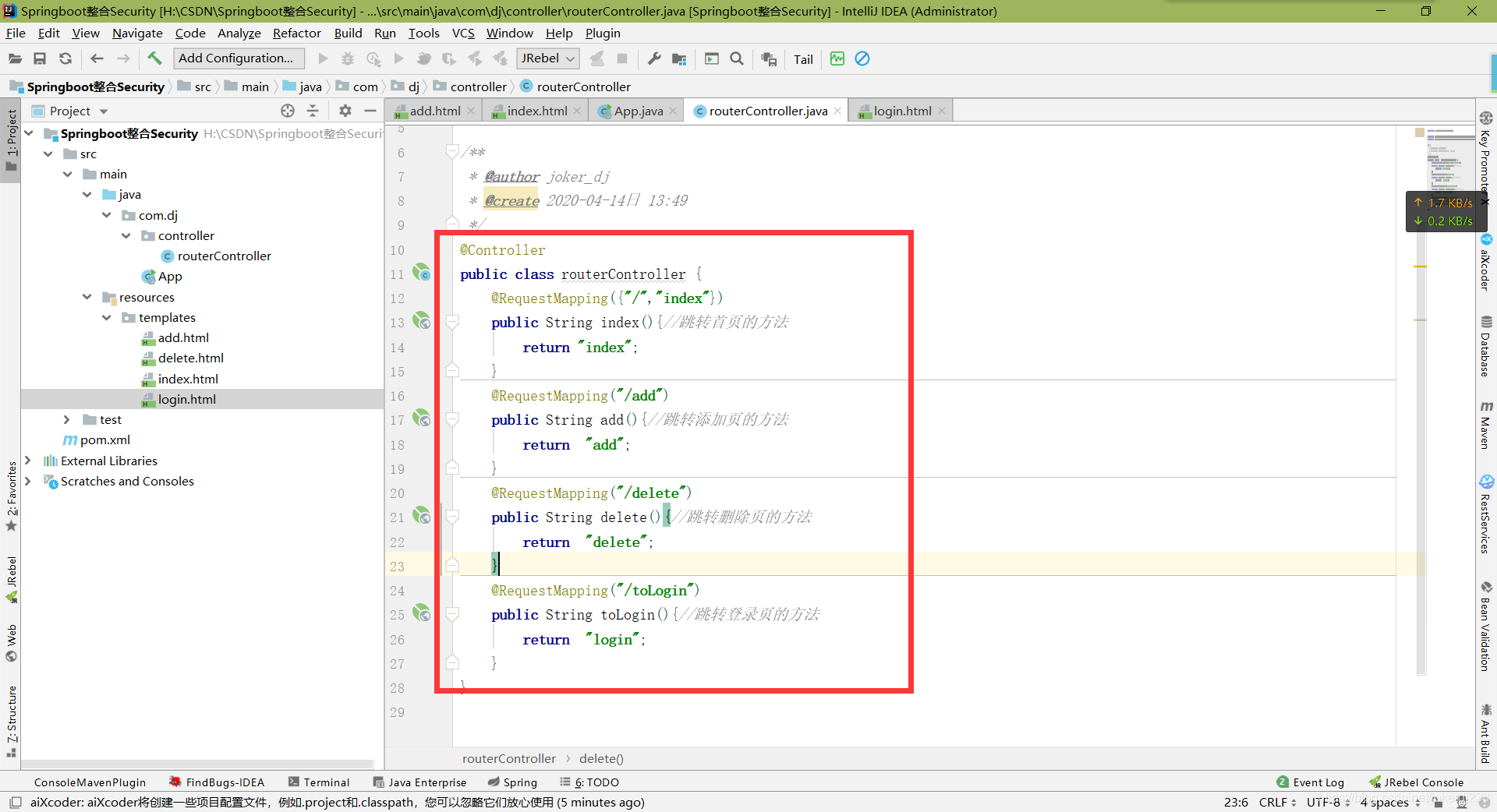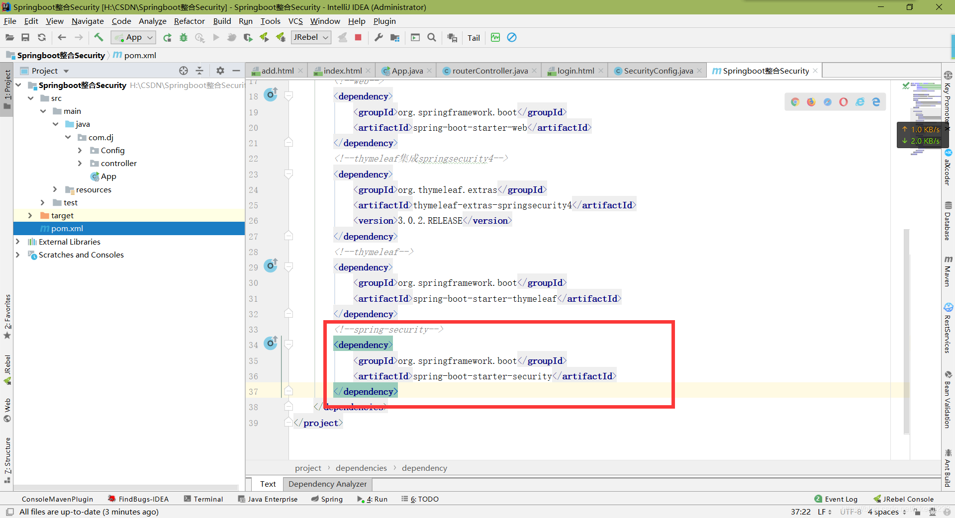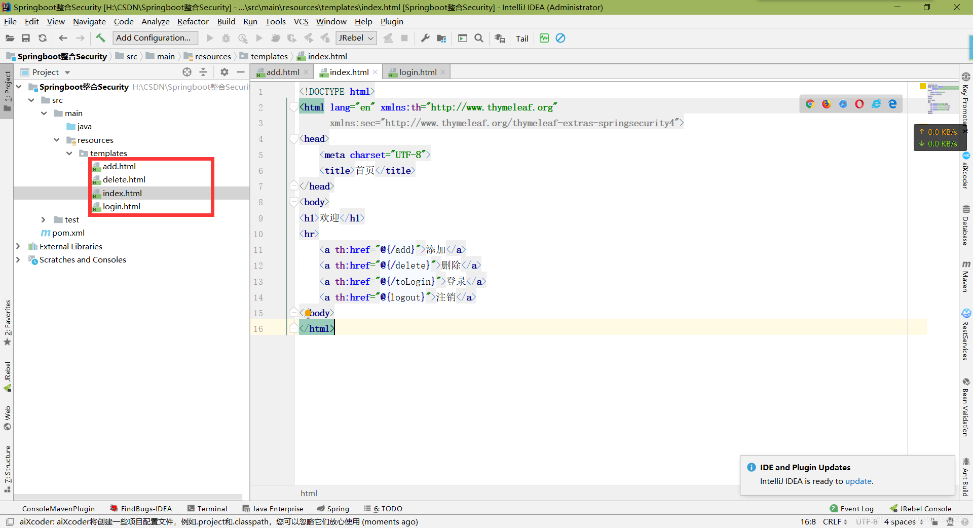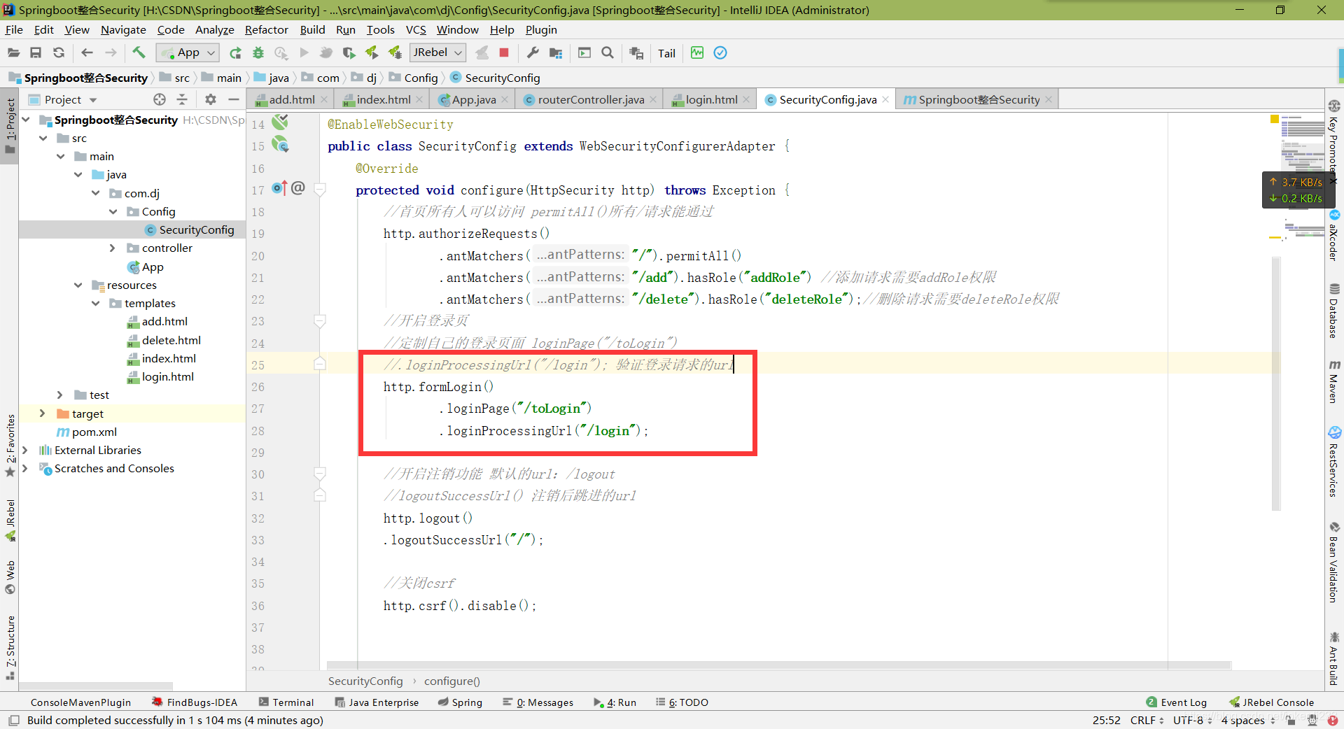.logoutSuccessUrl("/");注意:springboot2.0.9版本以后的不支持security标签,我们需要下降版本才能看到效果