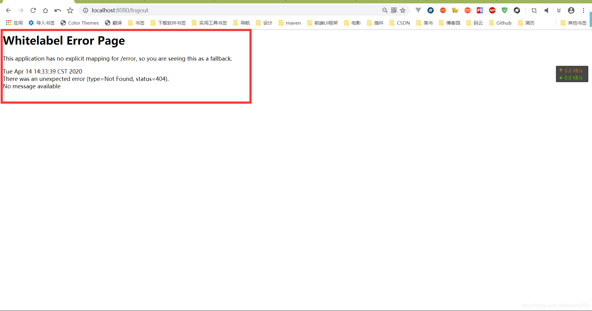 点击注销 会发现报错 原因 security怕收到csrf攻击 开启了csrf防御 需要手动关闭 什么是csrf攻击 可以看这篇文章 https://blog.csdn.net/xiaoxinshuaiga/article/details/80766369