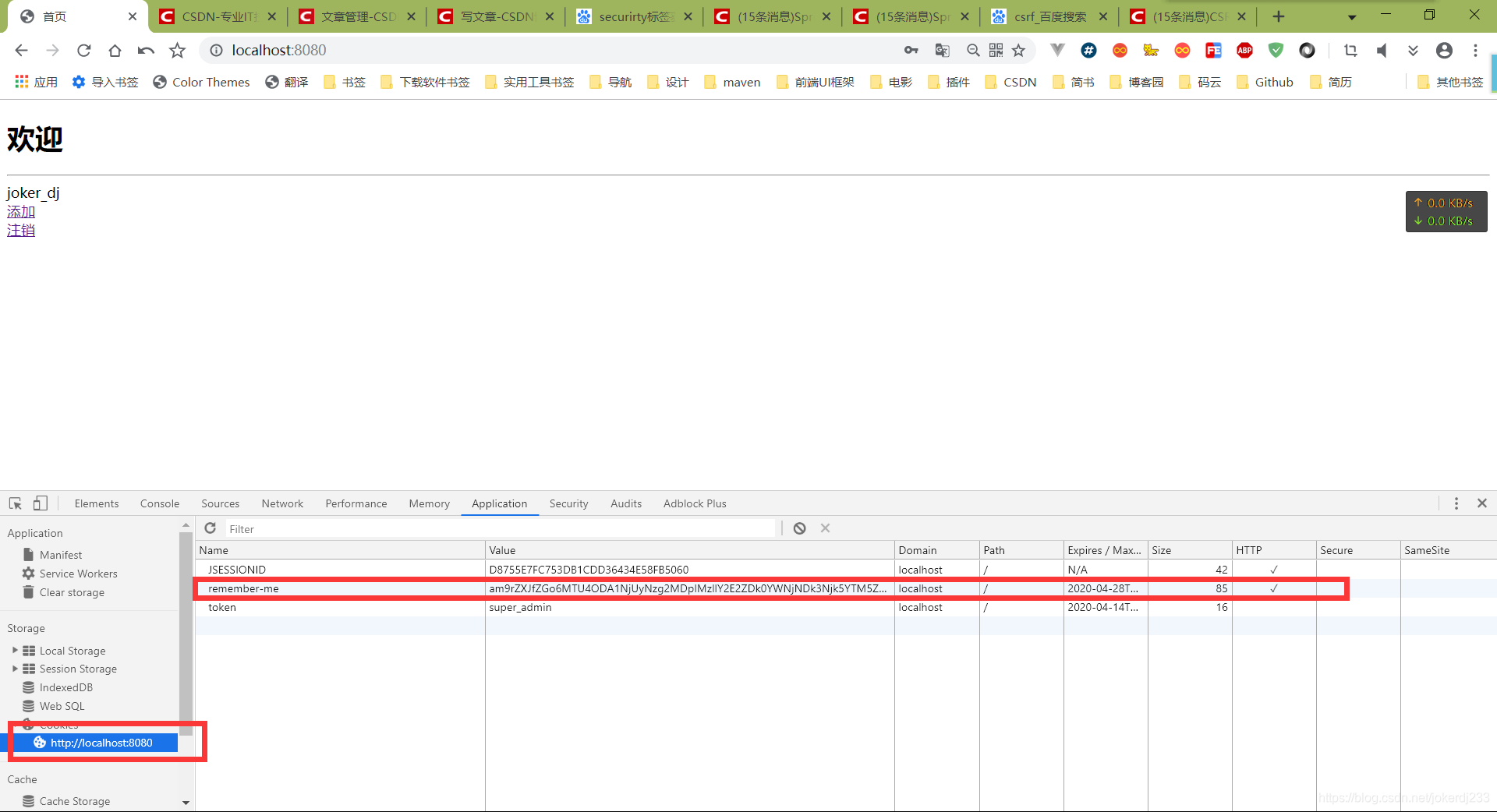 </form>再次登录 开启记住我 查看Cookeis 会发现Security把我们的用户信息存到了cookies中