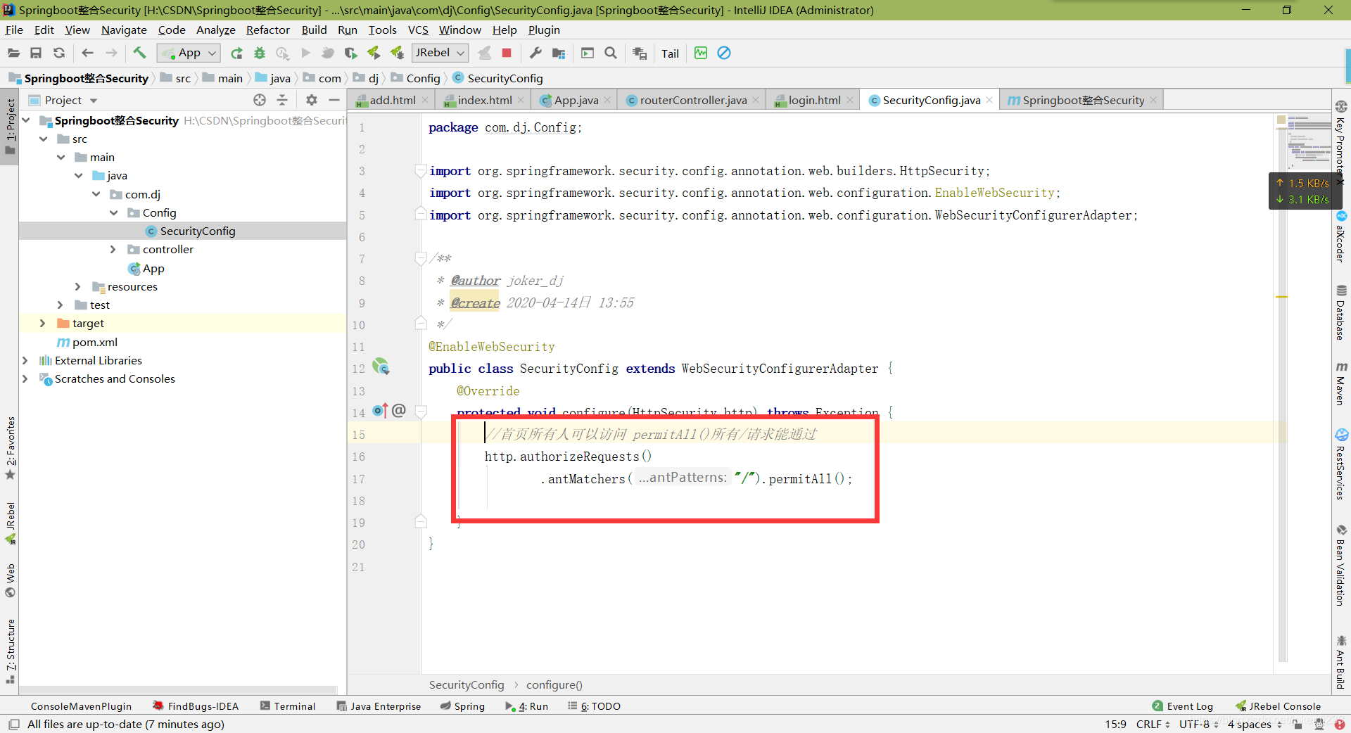 //首页所有人可以访问 permitAll()所有/请求能通过