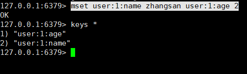 mset user:1:name zhangsan user:1:age 2