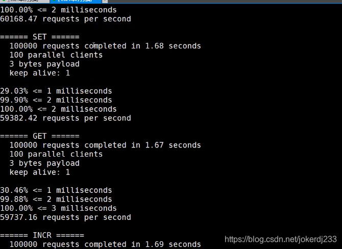 redis-benchmark -h localhost -p 6379 -c 100 -n 100000