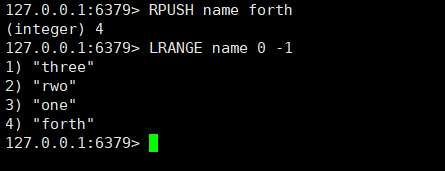 LPUSH key value127.0.0.1:6379> LPUSH name one