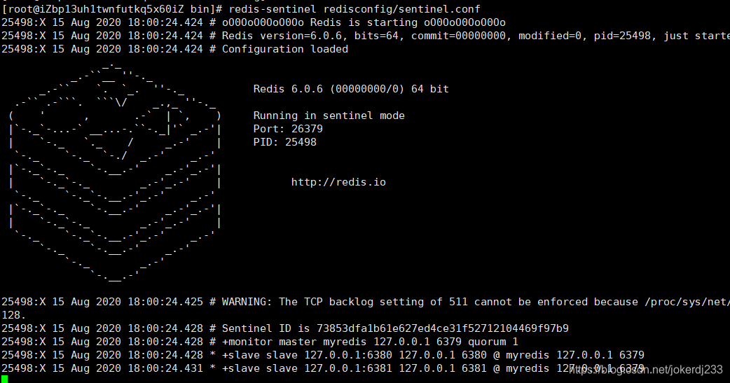 sentinel monitor myredis 127.0.0.1 6379 1