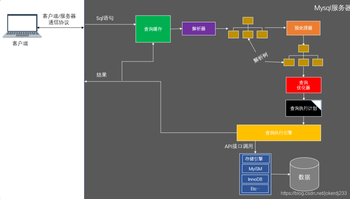 提供核心的服务功能 如果sql接口,完成缓存的查询,sql的分析和优化部分及内置函数的执行. 所有跨存储引擎的功能都在这一层实现. 服务器会解析查询并创建相应的内部解析权,并对其完成相应的优化,生成相应的执行操作 服务器还会查询内部的缓存,如果缓存空间足够大,这样可以解决大量读操作的环境中,能够很好的提升系统性能
