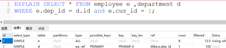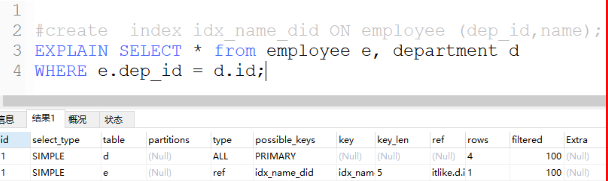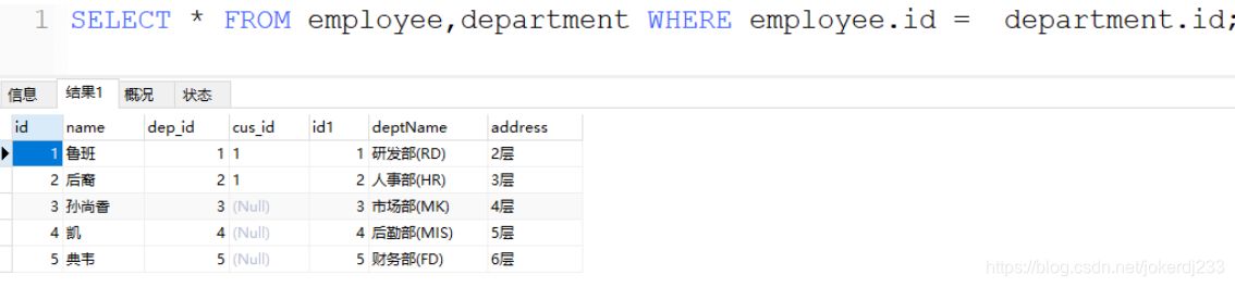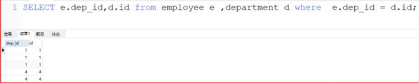 SELECT * from employee e INNER JOIN department d on e.dep_id= d.id;