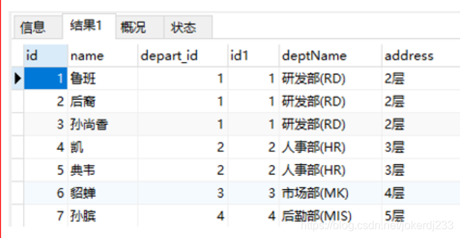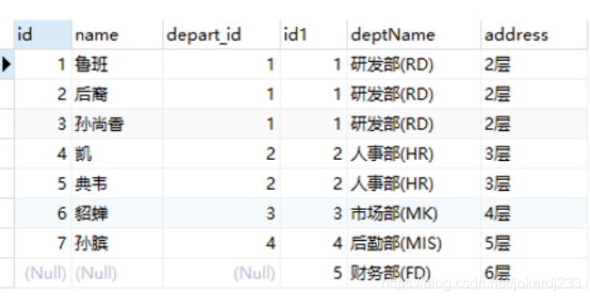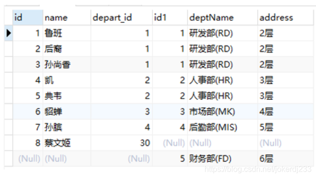INSERT INTO `department` VALUES ('2', '人事部(HR)', '3层');
